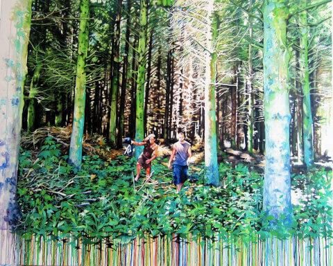 La coulure raconte le processus de peindre, il montre la gamme de couleur avant le mélange et la représentation. La coulure raconte aussi la matière, elle est un mélange de couleurs, d’eau, de gravité. Elle montre dans la peinture la vie autonome du medium, cette force pleine d’accident que seule la nature sait créer. A l’opposé d’une approche mécanique où tout est reproductible.